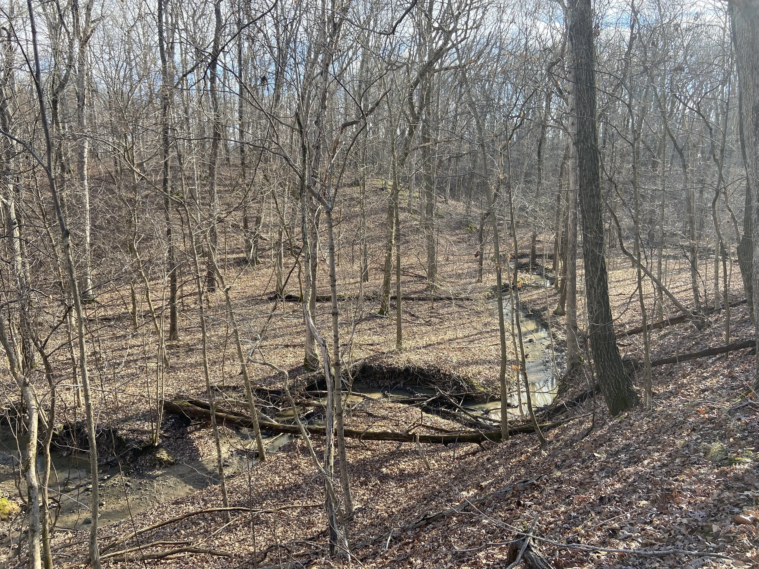 Rolling terrain on the east could be easily dammed for a pond.